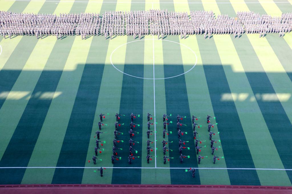 大会在雄壮的国歌声中开始。伴随着义勇军进行曲,全体新生在教官的带领下,迈着整齐的步伐,用嘹亮的口号、严密的纪律、昂扬的精神接受检阅。随后,各连队进行了军体拳、旗语操、战术基础动作、大合唱等军训科目表演,同学们整齐的列队、饱满的热情、精准的动作赢得了阵阵掌声,充分展示了军训成果。