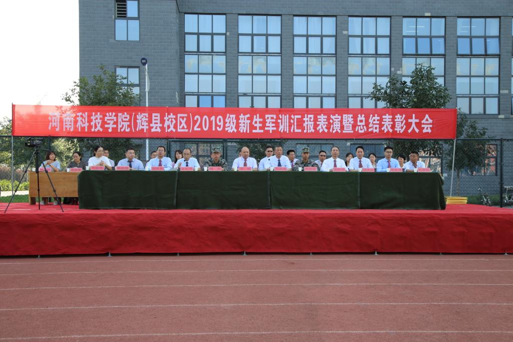 9月24日,金风送爽,丹桂飘香,高职学院2019级新生军训汇报表演暨总结表彰大会在操场举行。高职学院领导高跃、乐玉忠、宋合成、吴艳兵,32150部队军训营营长陆军、军训营副营长韩鹏程及相关部门负责同志参加会议。大会由学院党委副书记孙敬坤主持。